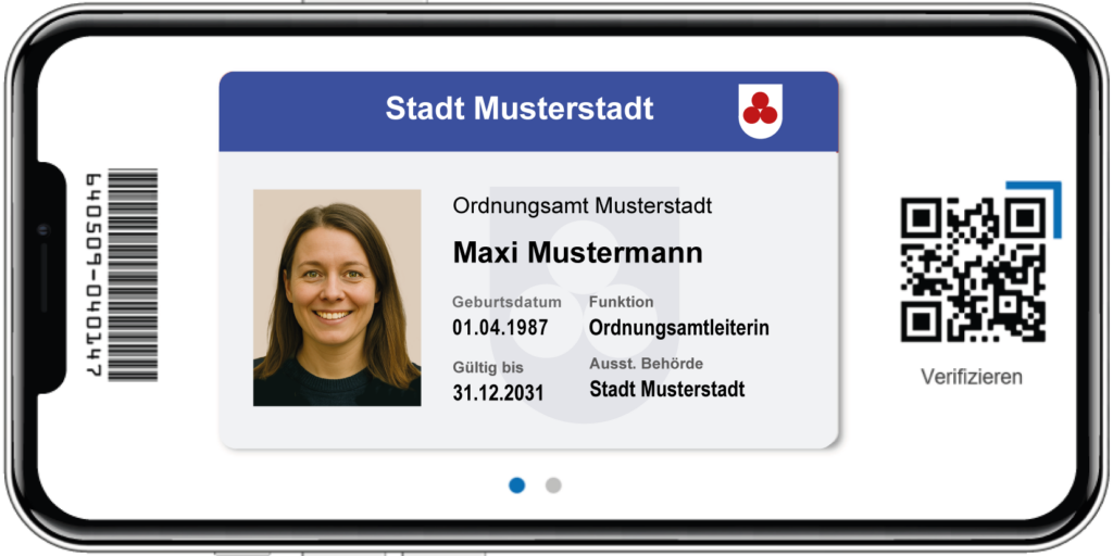 Mit ihrem Smartphone haben Sie nun neben digitaler Fahrkarte, Krankenkassen-Karte, Kreditkarten, Kundenkarten, usw. auch ihren persönlichen Dienstausweis immer griffbereit dabei und benötigen auch keinen zusätzlichen Platz in der Geldbörse.